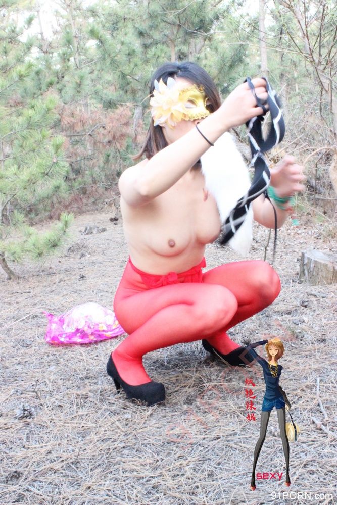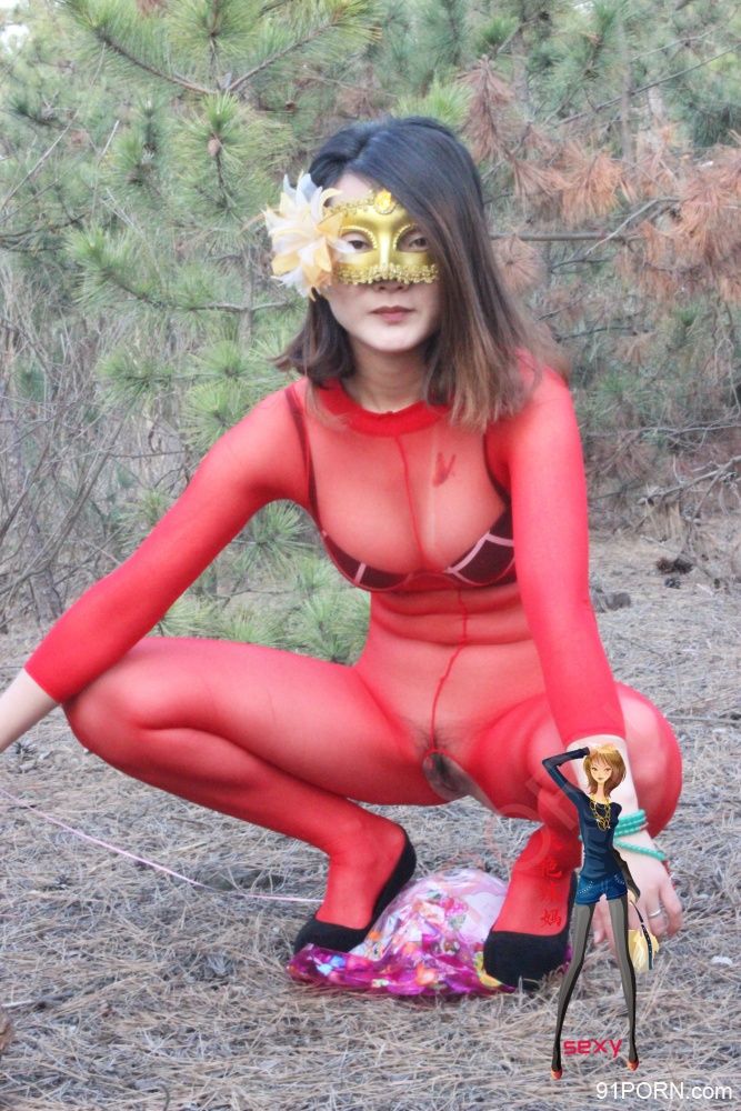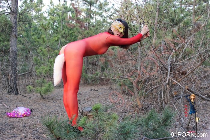 嘴里和逼眼里再塞一个根,撅着腚在树林里展览