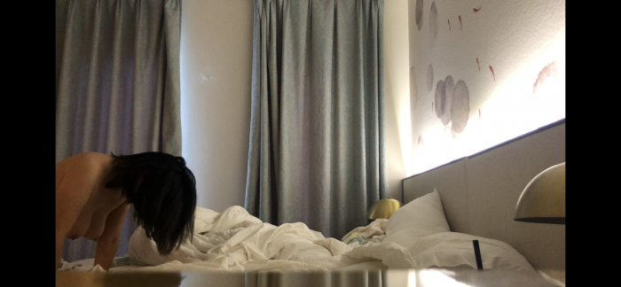 重点来了:到门口后她出来开的门,穿着件丝滑睡衣,到房间后我才发现她根本没穿内裤就下来了。而且把毛都刮干净了。进房间后我才知道原来她没和儿子睡一间,应该又开一间给儿子睡(后来想想也对,都8岁了怎么还会和母亲同床呢,那会出事情的,哈哈)我脱光我的衣裤躺床上,她就去把灯关了。我一把搂过她,双手颤抖的解着她睡衣扣,看到双乳后真的大,但乳头偏小。我先和她舌吻了一会。然后又吸上她的巨乳,嘴里还说着真大啊。她居然笑我说是不是小时候没吃饱,是不是男人都喜欢胸大的。(这还用说吗?)接着我移到下面给她舔逼,没毛就是舔得过瘾。舔了一会后我又和她舌吻上了,然后直接肉棒对准骚逼插了进去。(其实我不喜欢戴套的感觉,知道可能不安全,但只有无套我才觉得真正把这女人给上了,不知道兄弟们是不是这样)套子带了就是摆设,结果一个没用上!激战就开始了,刚开始她还不敢叫床,插几下爽后开始慢慢哼起来,到后来就大叫了。(因为她住的是家庭旅馆,美国房子隔音本来就差,我觉得旁边房间要有人的话绝对能听到这淫妇的呻吟声,不知道她儿子会不会听到他妈在隔壁被人操着)后来叫她女上继续干,她开始慢慢放开了,女上时就很用力的磨擦和深插,我正好保留体力一会再干她,双手玩弄着那对巨乳,清到深处就抬头含着乳头又吸又舔。她高潮后我们就开始中场休息。和她聊着天得知她说她是86年的。我问她来这一周约过几个男的了?她说我是第一个(我也就呵呵一信吧)本来想给她拍几张照片留念,她死活不同意,所以就作罢,那两张是我硬拍留底的。