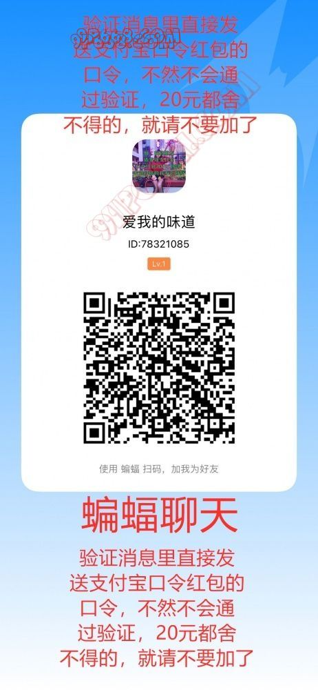 加我有20门槛,过滤口嗨,害怕被骗20元的人请不要加!验证请直接发送支付宝口令红包8位口令,不要说什么好,可以!