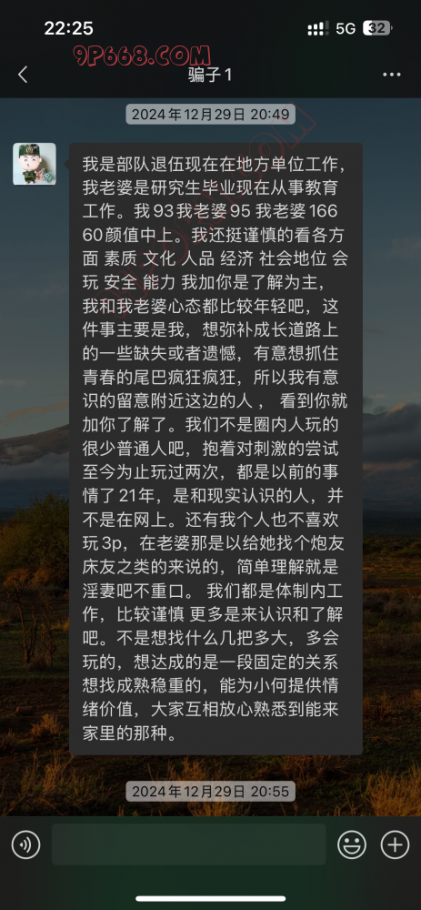 要擦亮眼睛,现在骗子手段越来越高明也越来越有耐心。这个骗子拿2个微信2个qq并用了变声器软件一个人装两个人让你以为是夫妻,并且会很有耐心的跟你聊三四天才收网。骗局是说想给老婆一个惊喜买京东e卡,但自己的账号买不了(会给你发购买失败的截图)然后让你帮忙买 再把卡密发给他老婆。记住别上头,有怀疑了直接跟骗子语音电话,骗子是不敢的。见面之前任何形式跟你要钱的都当心大概率是骗子