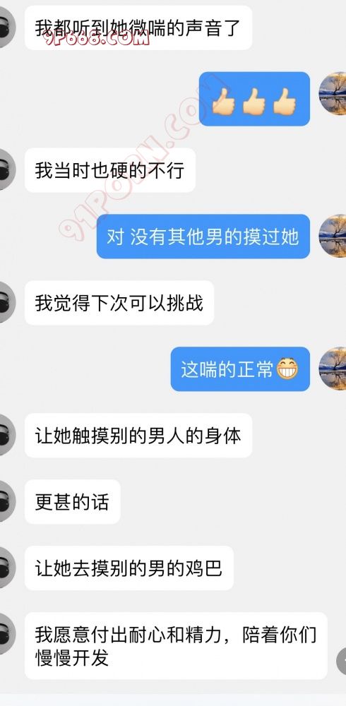 男人四:第二天喵女士穿的粉色花的修身的裙子,上面穿了一个贴身T恤,很显身材。腰细,臀翘。这个男人,头发稍金黄,皮肤白皙。很干净利落的帅男孩。看见喵女士,给m先生说,嫂子身材比例真好,很匀称。到楼梯间后,喵女士问他,你喜欢什么颜色的丝袜,他说黑色白色都喜欢,透肉的不透肉的都喜欢。然后喵女士把丝袜慢慢脱给他,漏出脚丫的时候,男人很惊喜的喜欢,说我能不能看看你的脚,亲亲。喵女士不好意思的说可以。然后把脚伸向他,他说你的脚好小,比我手还小。皮肤真好。喵女士紧张的贴着老公。m先生就喜欢这样旁观别的男人触碰自己的老婆。很有成就感。m先生说,我最喜欢她的脚了。真的很喜欢。这个男人喵女士很有好感,悄悄对老公说我能不能抱抱他。m先生对男人说,给你一个奖励,走之前老婆抱抱你。男人也很开心。伸开双臂,搂住喵女士的腰,然后摸到臀部使劲将喵女士向上抱起。说你真轻,我能给你抱起来。最后,说了一句,嫂子你真香。结束分开后,男人给m先生发信息,说自己会按摩,有需要了可以找他。嫂子的丝袜还有体香。真好。以后可以慢慢引导其他方面。