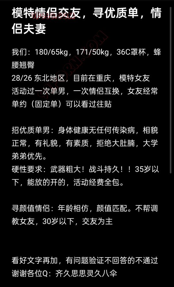 寻颜值情侣:年龄相仿,颜值匹配。不帮调教女友,30岁以下,交友为主