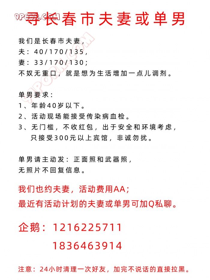 【0431】长春夫妻诚寻同城夫妻或单男,非诚勿扰!!!
